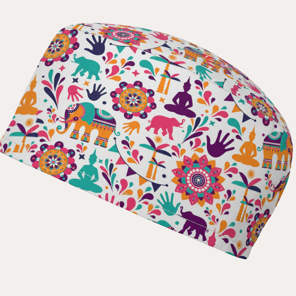 Gorro de quirófano de algodón - Estampado hindú fondo blanco.
