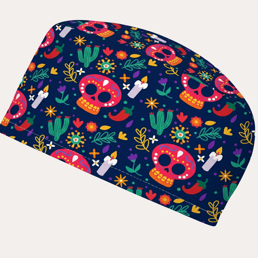 Gorro de quirófano de algodón cómodo y duradero con goma posterior para una mejor sujeción del pelo largo.